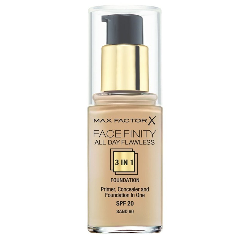 Max Factor Face Finity All Day Flawless 3 in 1 es una base de maquillaje con primer, corrector y base en un solo producto. Proporciona una cobertura impecable, acabado mate y larga duración.