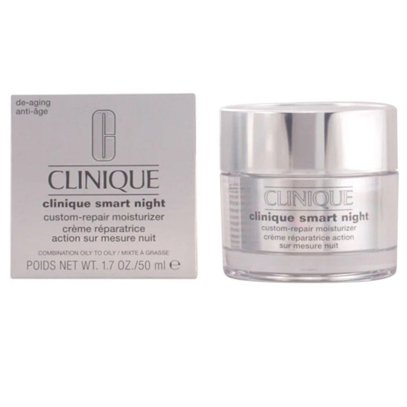 Clinique Smart Night Custom-Repair Moisturizer Combination Oily to Oily hidrata y repara la piel grasa o mixta-grasa durante la noche. Reduce arrugas, mejora la firmeza y aporta luminosidad sin sensación grasa.