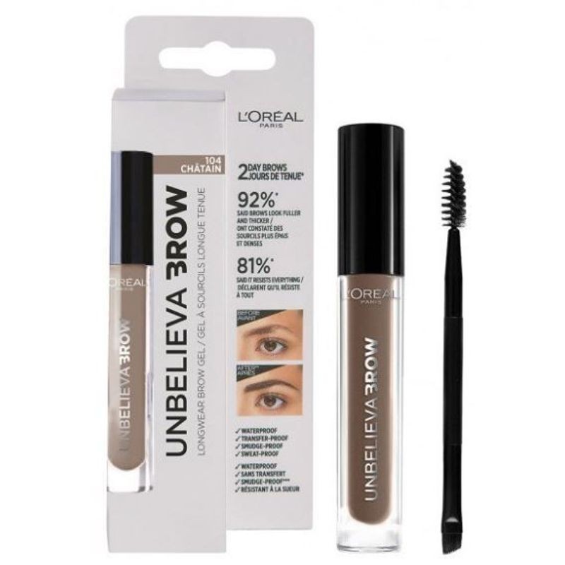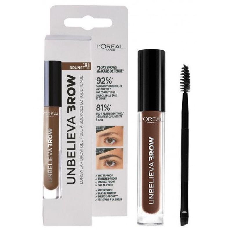 L'Oréal Unbelieva Brow es un gel waterproof de larga duración para cejas. Rellena, define y fija al instante con acabado natural hasta por 2 días. Fácil de aplicar y resistente al agua, sudor y roces.